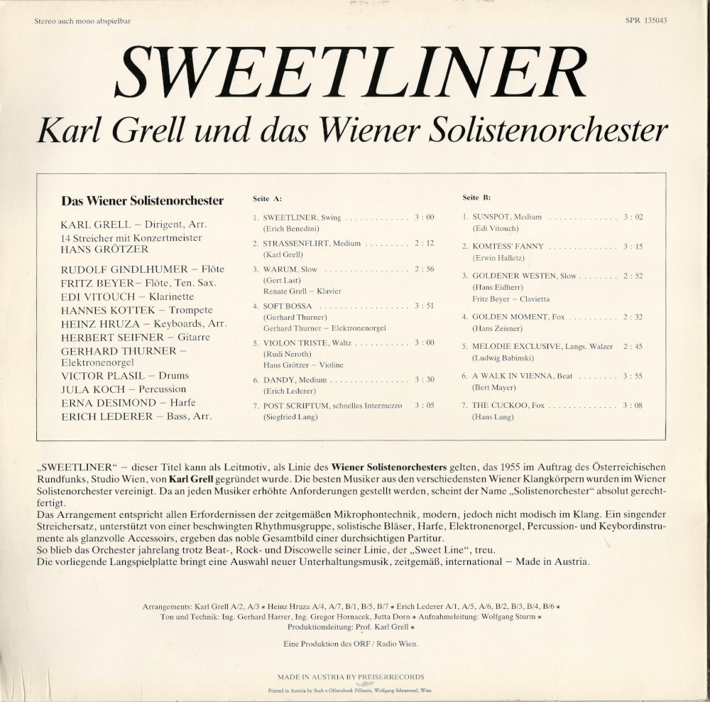 Karl Grell / Das Wiener Solistenorchester - SWEETLINER (VG+)